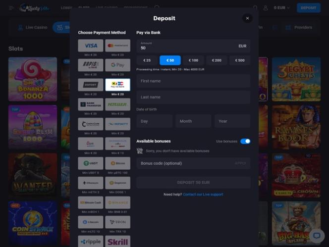LuckyVibe पर बैंकिंग विकल्प