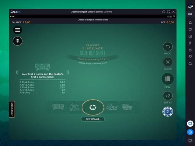 | Perfect Blackjack | खड़ा होना | हाँ | कोई भी 2 | 1 | नहीं | - | - | नहीं | 99.57% | 6 | नहीं |