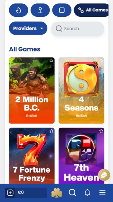 प्लेटफ़ॉर्म का पूरा लेआउट आसानी से नेविगेट किया जा सकता है, जिसमें सभी महत्वपूर्ण पृष्ठ, श्रेणियाँ और जानकारी स्पष्ट रूप से प्रदर्शित होती हैं। जिन उपयोगकर्ताओं को ऑनलाइन जुए का कोई अनुभव नहीं है, उन्हें कैसीनो में अपना रास्ता खोजने में कोई परेशानी नहीं होगी - हमारे हिसाब से यह एक बहुत बड़ा फायदा है।