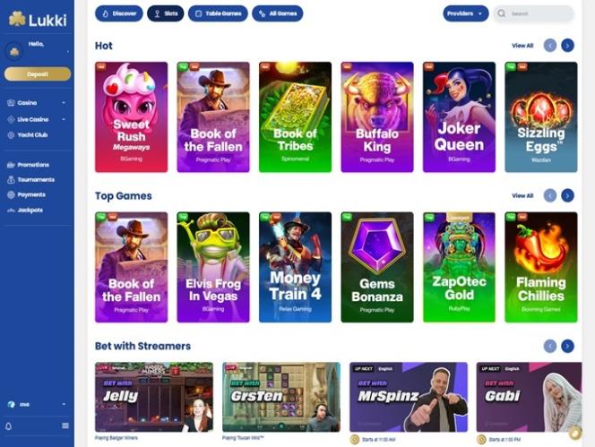 लुक्की कैसीनो के होमपेज पर एक खिलाड़ी के तौर पर आपकी ज़रूरत की हर चीज़ मौजूद है। आप सबसे ज़्यादा बिकने वाले प्रमोशन देख सकते हैं, सभी नए और सबसे लोकप्रिय उत्पादों को ब्राउज़ कर सकते हैं, कौन से सॉफ़्टवेयर प्रदाता ऑफ़र कर रहे हैं, और ब्रांड के बारे में सभी ज़रूरी जानकारी पढ़ सकते हैं।