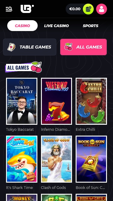 जब कैसीनो और लाइव कैसीनो अनुभागों की बात आती है, तो उपलब्ध उपश्रेणियों में से कुछ हैं बोनस खरीद, लाइव गेम, मेगावेज़, इंस्टेंट गेम, स्लॉट, टेबल गेम, और बहुत कुछ।
