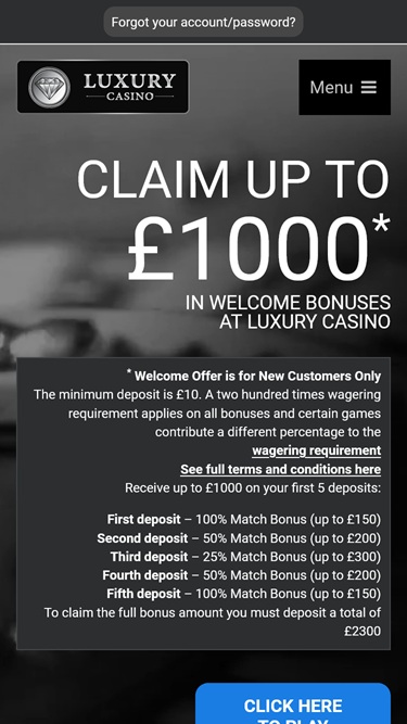 नीचे Luxury Casino में पेश किए जा रहे वर्तमान प्रमोशनों की सूची दी गई है।