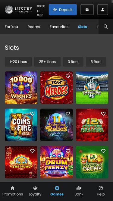 Slots Luxury Casino की गेमिंग लाइब्रेरी का बड़ा हिस्सा हैं, जिसमें सैकड़ों Microgaming स्लॉट वर्चुअल फ़्लोर पर मौजूद हैं। गेम्स की गुणवत्ता और विशेषताओं में भिन्नता है, और जटिल गेम्स में पिक'एम गेम्स, फ्री स्पिन्स, एक्सपैंडिंग वाइल्ड्स और अन्य सुविधाएँ शामिल हैं।