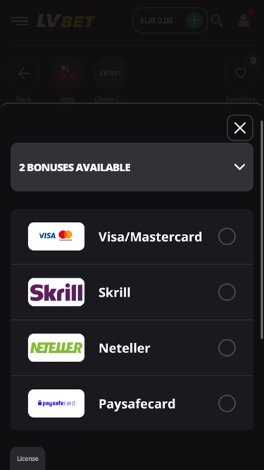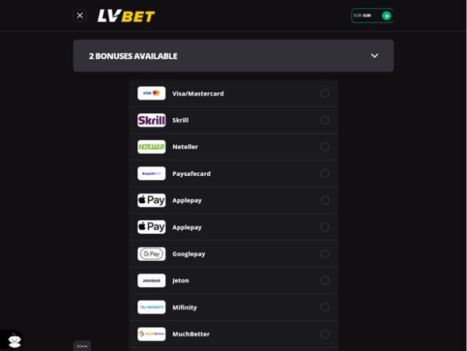 एलवी बेट की बैंकिंग प्रणाली अच्छी है, हालाँकि थोड़ी धीमी है। साइट क्रेडिट कार्ड, ई-वॉलेट और बैंक ट्रांसफर के ज़रिए जमा और निकासी स्वीकार करती है, और भुगतान पूरा होने में 3 कार्यदिवस तक लग सकते हैं। साइट से प्रतिदिन अधिकतम €5,000 की निकासी की जा सकती है।