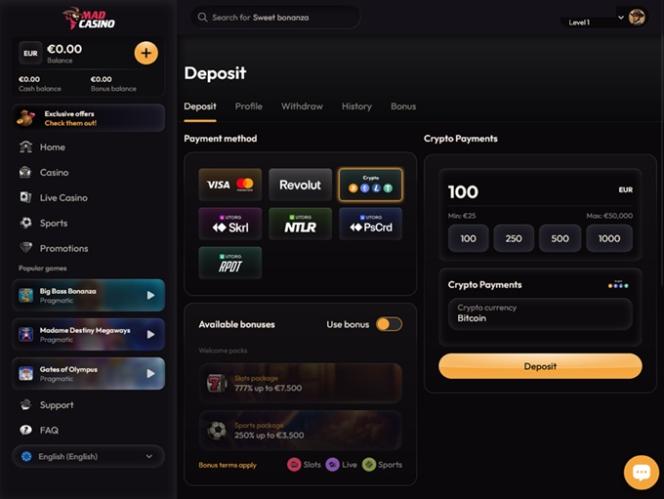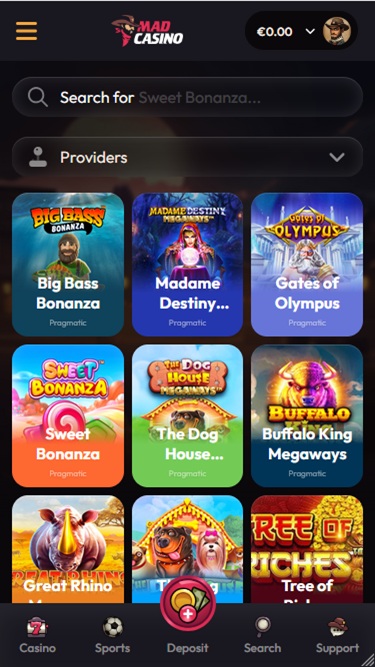 बेशक, हमें यह भी बताना होगा कि खिलाड़ियों के पास दर्जनों अलग-अलग खेलों और ई-स्पोर्ट्स इवेंट्स पर पैसा लगाने का विकल्प होगा, क्योंकि मैड कैसीनो में स्पोर्ट्स बेटिंग के लिए एक पूरी तरह से अलग सेक्शन है। स्पोर्ट्सबुक अविश्वसनीय रूप से विस्तृत है और इसमें अनुकूल ऑड्स और लाइव बेटिंग क्षमताएँ हैं।