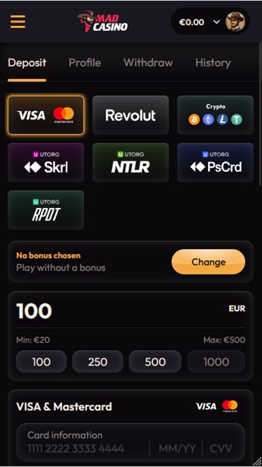 मैड कैसीनो एक आधुनिक जुआ साइट है जिसने 2025 में खिलाड़ियों के लिए अपनी वेबसाइट लॉन्च की। अपनी स्थापना के बाद से, ब्रांड ने क्रिप्टो उपलब्धता और कैसीनो गतिविधियों और खेलों की एक व्यापक लाइनअप, जैसे स्लॉट, लाइव डीलर, टेबल गेम और खेल सट्टेबाजी विकल्प प्रदान करके बड़े दर्शकों को प्राप्त किया है, जबकि सभी बोनस का एक छोटा लेकिन ठोस चयन प्रदान करते हैं।