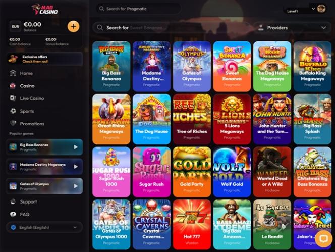 मैड कैसीनो में जुए के खेलों की एक विस्तृत श्रृंखला उपलब्ध है, जिनमें से आप चुन सकते हैं और उनका आनंद ले सकते हैं। इस ब्रांड ने 15 से ज़्यादा विशिष्ट सॉफ़्टवेयर प्रदाताओं से लाइसेंस प्राप्त किए हैं, और हालाँकि यह हमारी समीक्षाओं में देखी गई सबसे बड़ी संख्या नहीं है, फिर भी खेलों की सूची में काफ़ी विविधता और विविधता है।