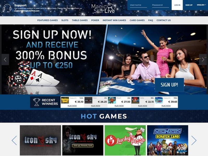मैजिक स्टार लाइव एक ऑनलाइन कैसीनो है जिसे 2015 में प्लैटिपस बी.वी. द्वारा लॉन्च किया गया था। एक खगोलीय थीम की विशेषता के साथ, मैजिक स्टार लाइव में खेलों की एक विस्तृत श्रृंखला, उचित भुगतान समय और खेलों की एक दिलचस्प सूची है, हालांकि बोनस पर दांव लगाने की आवश्यकताएं बेहतर हो सकती हैं।कैसीनो जानकारी