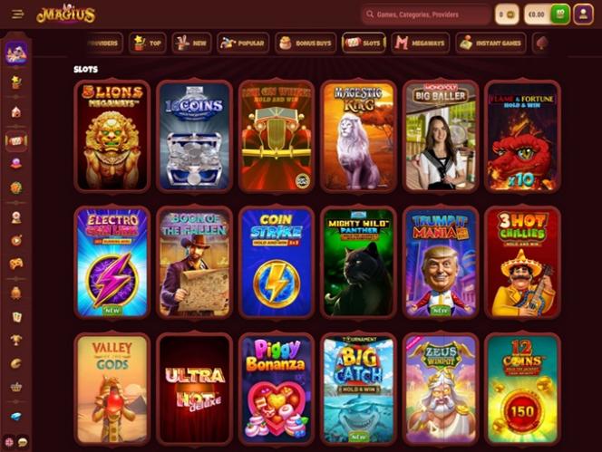 मैगियस कैसीनो ने लगभग सभी शीर्ष-स्तरीय सॉफ़्टवेयर प्रदाताओं को एक ही छत के नीचे इकट्ठा करने में कामयाबी हासिल की है, और सभी कल्पनीय और अकल्पनीय खेलों का एक विशाल संग्रह प्रस्तुत किया है। लॉबी एक्शन से भरपूर स्लॉट्स, आकर्षक लाइव डीलर टेबल और निष्पक्ष क्रैश गेम्स से भरी हुई है।