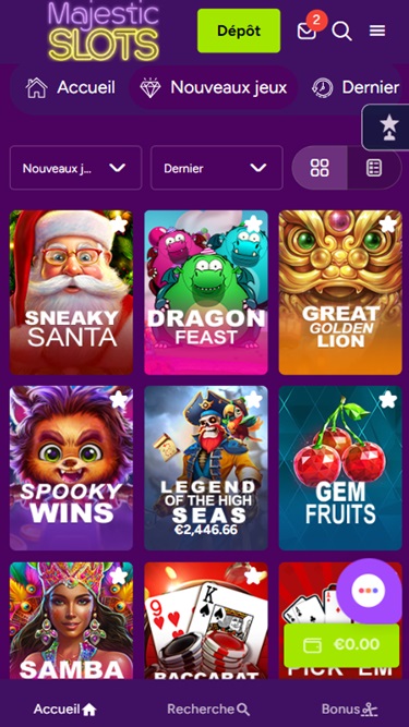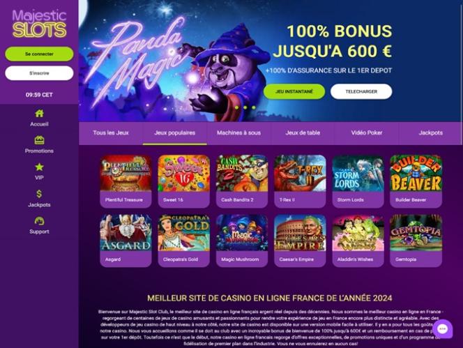 मैजेस्टिक स्लॉट्स कैसीनो एक ऑनलाइन सट्टेबाजी साइट है जिसकी स्थापना 2012 में हुई थी और यह फ्रांसीसी सट्टेबाजी बाज़ार पर केंद्रित है। इस कैसीनो का लुक और अनुभव शानदार है और यह कई अच्छे गेम्स, तेज़ भुगतान समय और बेहतरीन ग्राहक सहायता प्रदान करता है, जो इसे खेलने के लिए एक बेहतरीन साइट बनाते हैं।