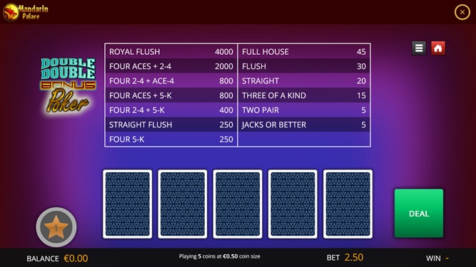 Mandarin Palace कैसीनो अपने ग्राहकों को कोई अतिरिक्त अंक नहीं देता है।