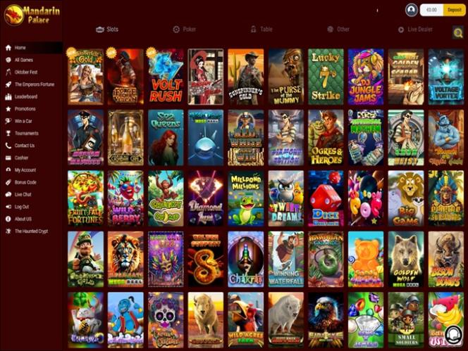 Mandarin Palace कैसीनो की लाइब्रेरी में Slots का बड़ा हिस्सा है, जिनमें ज़्यादातर वीडियो स्लॉट्स शामिल हैं। ये गेम ज़्यादातर वैसे ही हैं जैसे आप किसी ऑनलाइन कैसीनो से उम्मीद करते हैं, हालाँकि Arcadia जैसे गेम भी अनोखे लगते हैं।