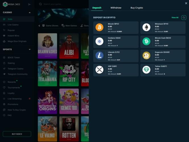 कैसीनो वेबसाइट का डिज़ाइन सभी के लिए उपयुक्त और प्रभावशाली है। इसे सभी iGaming ट्रेंड्स के अनुरूप और आधुनिक खिलाड़ियों की ज़रूरतों को पूरा करने के लिए नवीनतम तकनीकी उपकरणों से बनाया गया है। यहाँ सब कुछ बेहद सुव्यवस्थित है; कैसीनो इंटरफ़ेस पूरी तरह से उपयोगकर्ता-अनुकूल है, जिससे जुआरी बिना किसी परेशानी के कैसीनो की गेमिंग लाइब्रेरी को आसानी से ब्राउज़ कर सकते हैं। और, मेगाडाइस कैसीनो में उन्हें एविएटर, प्लिंको, नीड फॉर एक्स, क्वांटम एक्स जैसे आकर्षक क्रिप्टो गेम्स सहित कई बेहतरीन मनोरंजन मिलेंगे।