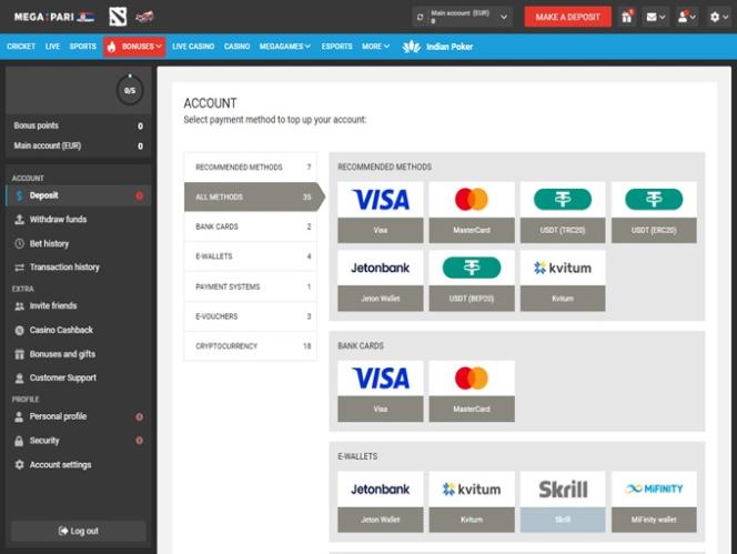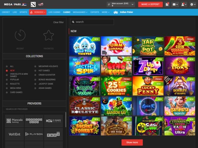 मानक कैसीनो के अलावा, मेगापारी अपने ग्राहकों को पूर्ण स्पोर्ट्सबुक, ईस्पोर्ट्सबुक, लाइव डीलर कैसीनो, पोकर रूम और बिंगो रूम प्रदान करता है।खिलाड़ी के मुद्दे