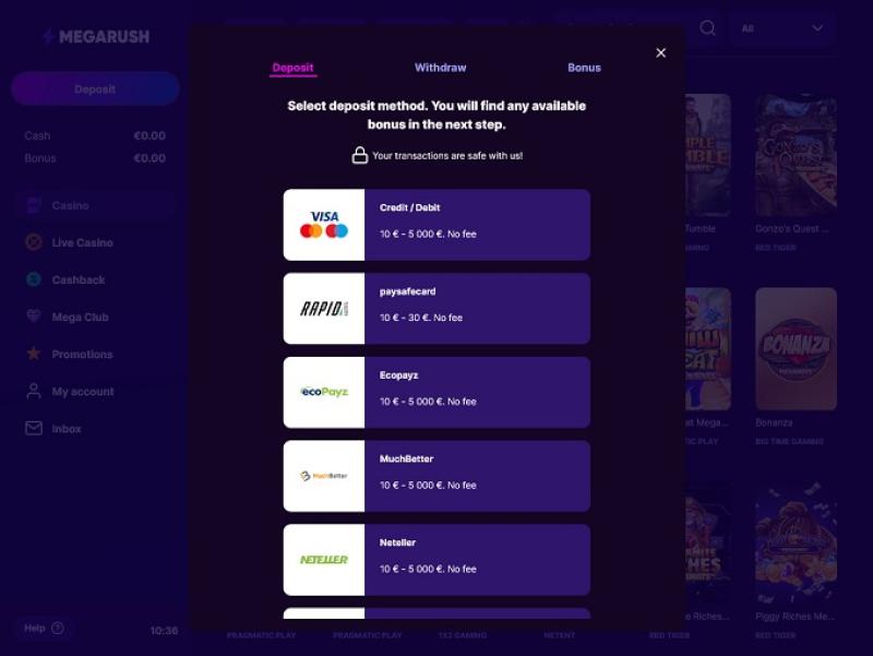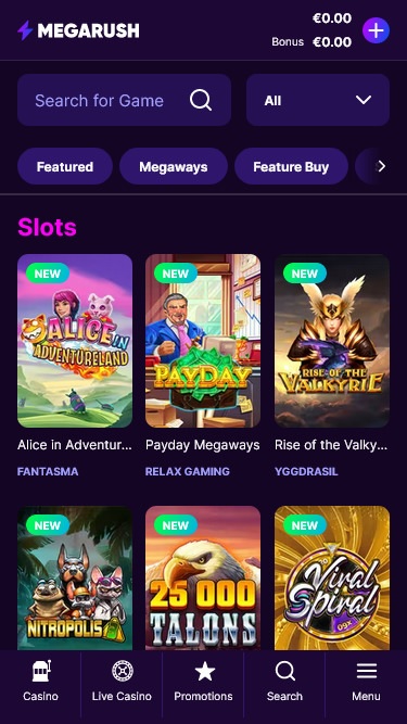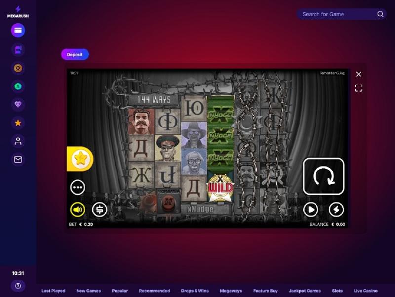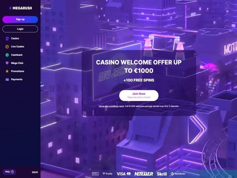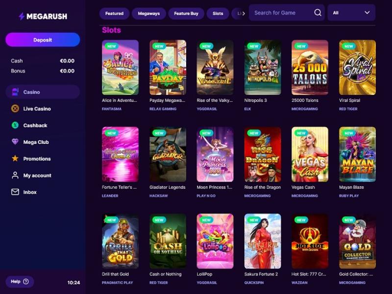 पहली नज़र में ही, मेगारश शायद सभी ऑनलाइन कैसीनो खिलाड़ियों को आकर्षित करेगा। कैसीनो का प्लेटफ़ॉर्म आधुनिक है और इसका डिज़ाइन स्पष्ट और सरल है। हमारी सबसे पसंदीदा विशेषता इसका शक्तिशाली वीडियो है जो स्वचालित रूप से चलता है। गहरे नीले और नीयन रंग, अच्छा लेआउट और सुव्यवस्थित श्रेणियाँ निश्चित रूप से एक आकर्षक संयोजन हैं।