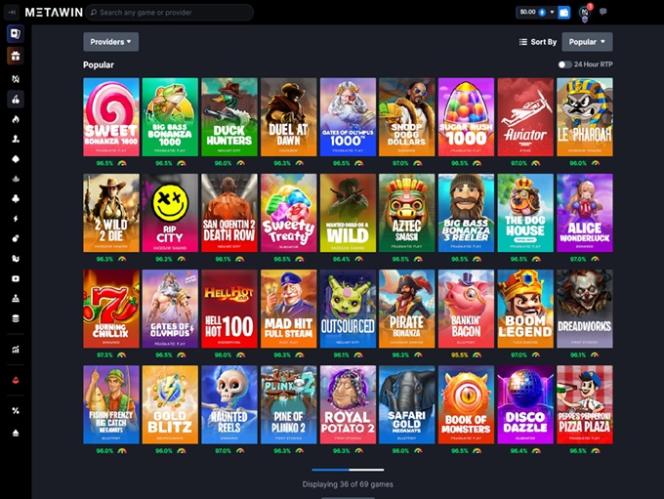 उदाहरण के लिए, मेटाविन में गेम्स की एक विस्तृत श्रृंखला है, जिसमें 40 से ज़्यादा अलग-अलग सॉफ़्टवेयर डेवलपर्स द्वारा विकसित 3,000 से ज़्यादा अनूठे रिलीज़ शामिल हैं। इस कैटलॉग में लगभग हर तरह के लोकप्रिय कैसीनो गेम उपलब्ध हैं, जिनके बारे में आप सोच सकते हैं, और इनमें से ज़्यादातर गेम उद्योग के कुछ सबसे प्रभावशाली सॉफ़्टवेयर प्रदाताओं द्वारा बनाए गए हैं।