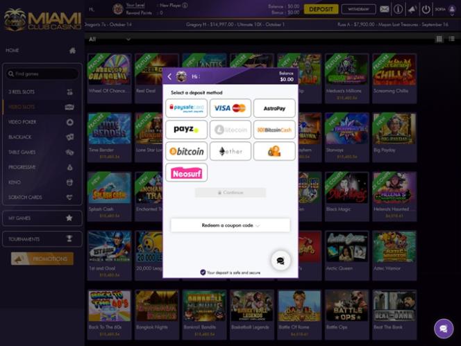 Miami Club Casino पर बैंकिंग विकल्प