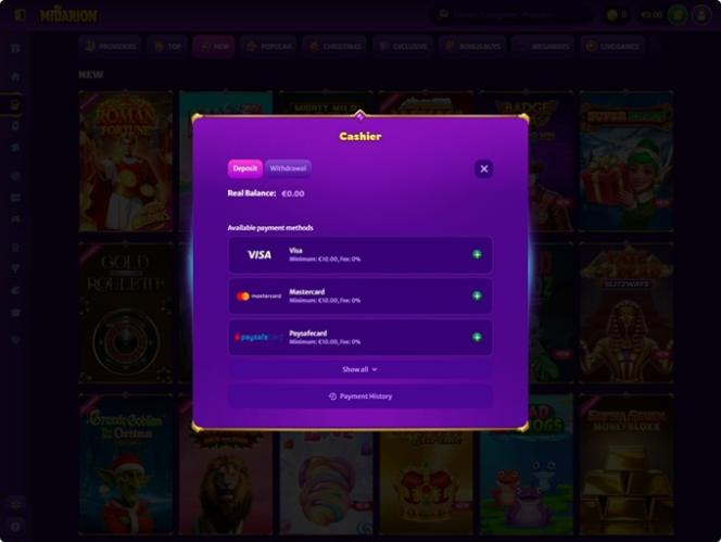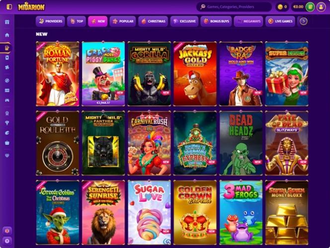 लेकिन, कैसीनो के गेम कलेक्शन में गहराई से जाने से पहले, यह कहना ज़रूरी है कि मिडारियन को आधुनिक जुआरियों की पसंद और ज़रूरतों को ध्यान में रखकर बनाया गया है। कैसीनो की वेबसाइट बेहद आकर्षक है। इसमें चमकीले रंग और आसान नेविगेशन के साथ-साथ खूबसूरती से तैयार किए गए ग्राफ़िक विवरण और थंबनेल भी हैं। खिलाड़ी गेम, कैटेगरी और गेमिंग स्टूडियो खोज सकते हैं, या फिर उपलब्ध कैसीनो कैटेगरी जैसे: रूलेट , गेम शो, ब्लैकजैक, हॉट जैकपॉट, स्लॉट आदि को ब्राउज़ कर सकते हैं।