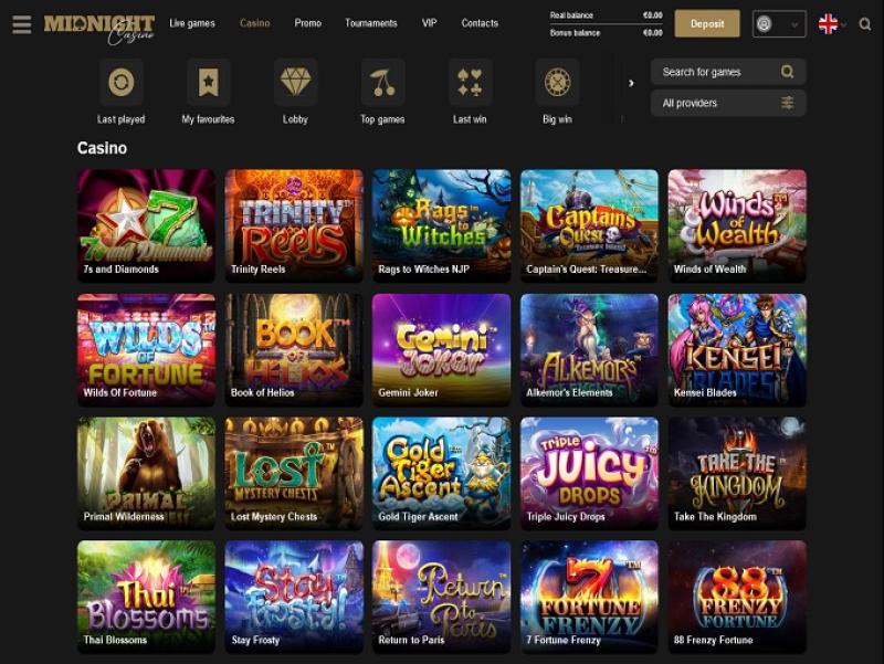 मिडनाइट कैसीनो एक बहुत ही अच्छी तरह से सुसज्जित लॉबी प्रदान करता है, जो कुछ सबसे प्रतिष्ठित ऑनलाइन कैसीनो सॉफ्टवेयर डेवलपर्स द्वारा प्रदान की जाती है।