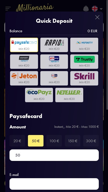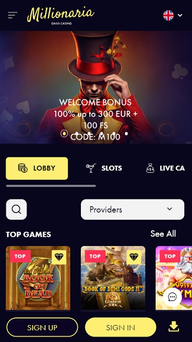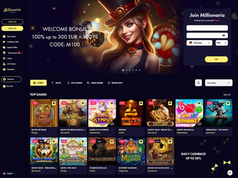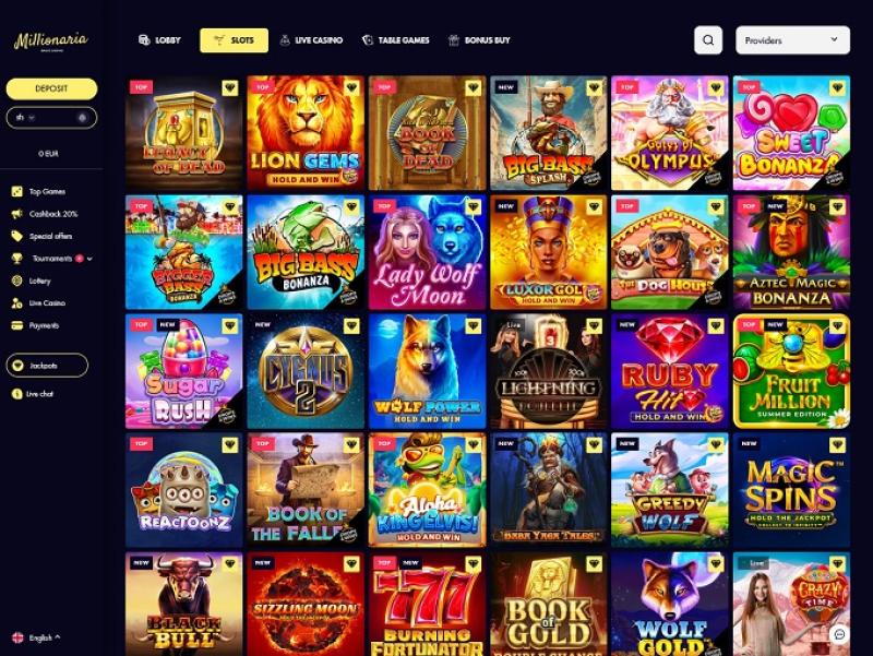मिलिओनेरिया एक क्रॉस-डिवाइस अनुकूलित गेमिंग स्थान है जो कुछ सबसे प्रतिष्ठित ऑनलाइन कैसीनो सॉफ्टवेयर डेवलपर्स द्वारा प्रदान की गई कैसीनो सामग्री प्रदान करता है जैसे: प्लेटेक, नेटएंट, इवोल्यूशन गेमिंग , क्वक्सपिन, यग्द्रसिल और कई अन्य।