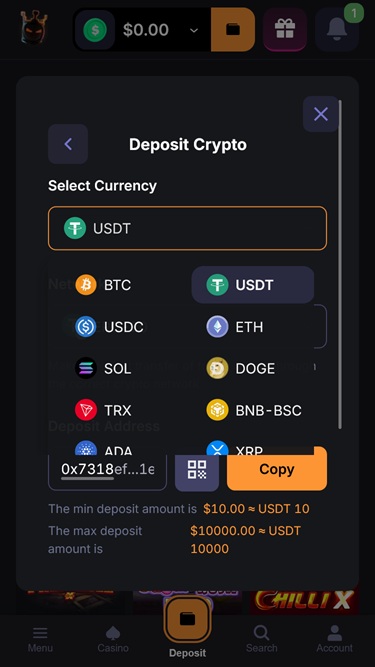 क्रिप्टो भुगतान के मामले में भी कैसीनो ढेरों विकल्प प्रदान करता है। चाहे आपको बिटकॉइन और एथेरियम जैसे लोकप्रिय विकल्प पसंद हों, या ट्रॉन और कार्डानो जैसे कम इस्तेमाल किए जाने वाले विकल्प, आपको अपनी पसंद का विकल्प ज़रूर मिल जाएगा।