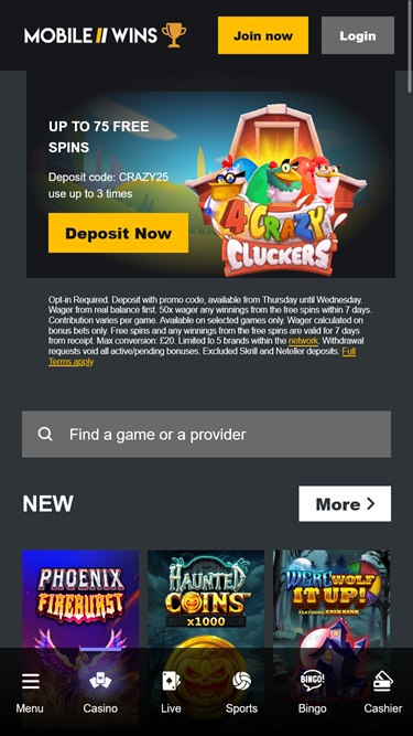 मोबाइलविन्स कैसीनो Microgaming, Net Entertainment, Playtech, 1x2gaming, Barcrest, Big Time Gaming, ELK Studios, Evolution Gaming, EYECON, lightningboxgames, Play'n GO, Rabcat, Thunderkick, Wazdan, Pragmatic Play, Nolimit City, Red Tiger Gaming, Spinomenal, Skillzzgaming, Fugaso, SYNOT Games, Skywind, Triple Edge Studios, Northern Lights Gaming, Stormcraft Studios, Switch Studios, All41 Studios, Gluck Games, Gameburger Studios, Pulse 8 Studios, Slot Factory, Neon Valley Studios, Shuffle Master, SpinPlay Games, Real Dealer Studios, GONG Gaming, Buck Stakes Entertainment, Games Global, 2by2 Gaming, Blueprint Gaming, NextGen, Tom Horn Gaming, WMS, Inspired Gaming, SG Interactive, Red7Mobile, CORE Gaming, Scientific Games, Reel Time Gaming, Iron Dog Studio, Old Skool Studios, Foxium, Betdigital, Just For The Win, PearFiction Studios, Wild Streak Gaming, Slingshot Studios, Fortune Factory Studios, Gamevy, Crazy Tooth Studio, ReelPlay, Alchemy Gaming, Black Pudding Games, Snowborn Games, Hacksaw Gaming, Gold Coin Studios, Half Pixel Studios, Eurostar Studios, Aurum Signature Studios, Lucksome Gaming, Leap Gaming, Wishbone Games, Circular Arrow and HammerTime Games द्वारा संचालित है, और इसके गेम एक वेब-आधारित इंस्टेंट प्ले प्लेटफ़ॉर्म के माध्यम से उपलब्ध कराए जाते हैं। स्मार्टफोन या टैबलेट के माध्यम से खेलने वालों के लिए कैसीनो की एक मोबाइल साइट भी है।Blackjack