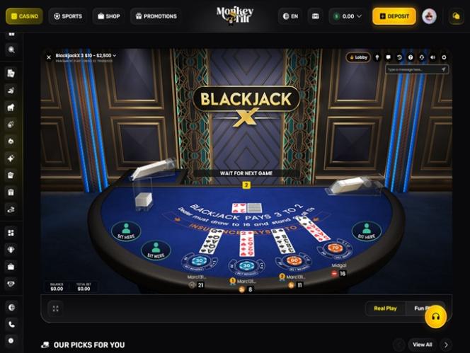 यहां मंकी टिल्ट के टेबल गेम्स अनुभाग से कुछ अनुशंसित गेम दिए गए हैं: ब्लैकजैक, रूलेट, अमेरिकन रूलेट, अमेरिकन बैकारेट जीरो कमीशन, अमेरिकन बैकारेट, फर्स्ट पर्सन रूलेट, फर्स्ट पर्सन डील ऑर नो डील, फर्स्ट पर्सन लाइटनिंग रूलेट, फर्स्ट पर्सन ब्लैकजैक, फर्स्ट पर्सन Xxxtreme लाइटनिंग रूलेट, और फर्स्ट पर्सन Xxxtreme लाइटनिंग बैकारेट...