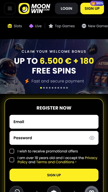 कैसीनो में अपनी पहली जमा राशि जमा करने पर आपको एक रोमांचक अंतरिक्ष यात्रा का टिकट मिलेगा! ऑपरेटर ने नौ उपलब्ध स्तरों के साथ एक उदार लॉयल्टी स्कीम बनाई है: लूनर रोवर, स्टार गेजर, स्काईवॉकर, सेलेस्टियल एक्सप्लोरर, लूनर लैंडर, ऑर्बिट ऑब्जर्वर, गैलेक्सी वॉयेजर, मून मिशनरी और अपोलो 11।