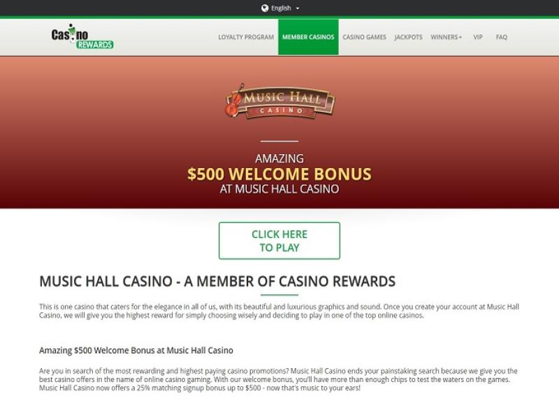 Music Hall Casino एक ऑनलाइन सट्टेबाजी साइट है जिसका संचालन कैसीनो रिवॉर्ड्स समूह द्वारा किया जाता है, जिसकी 25 से ज़्यादा अन्य कैसीनो संचालित करने के कारण अच्छी प्रतिष्ठा है। ये सभी कैसीनो एक जैसे सॉफ़्टवेयर, बैंकिंग और ग्राहक सहायता सुविधाएँ प्रदान करते हैं और eCOGRA द्वारा प्रमाणित हैं। ये विशेषताएँ, यूके और माल्टीज़ लाइसेंसिंग के साथ मिलकर, म्यूज़िक हॉल को एक प्रतिष्ठित और सट्टेबाज़ों के लिए बेहद आकर्षक स्थान बनाती हैं।