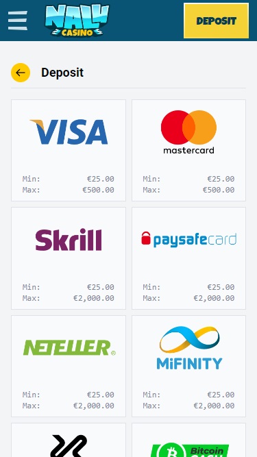 भुगतान और निकासी पृष्ठ आपको आपके क्षेत्र में उपलब्ध जमा और निकासी विधियों का विस्तृत अवलोकन प्रदान करेगा। ध्यान दें कि यह ऑपरेटर पारंपरिक और क्रिप्टो, दोनों भुगतान विकल्प प्रदान करता है।
