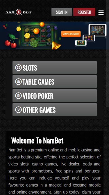 नैम्बेट कैसीनो एक ऑनलाइन सट्टेबाजी साइट है जिसका स्वामित्व और संचालन कुराकाओ स्थित पोलोलो गेमिंग द्वारा किया जाता है। 2016 में स्थापित, नैम्बेट के पास बिंगो, पोकर, स्पोर्ट्सबेटिंग और कैसीनो गेम्स सहित कई तरह के गेम्स हैं। इस शानदार विशेषता के बावजूद, मानक से ज़्यादा बोनस दांव लगाने की ज़रूरतें और भुगतान में एक हफ़्ते तक का समय लग सकता है, जो नैम्बेट को एक अच्छी, लेकिन बेहतरीन ऑनलाइन सट्टेबाजी साइट नहीं बनाता।कैसीनो जानकारी
