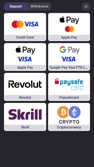 ध्यान रखें कि क्रिप्टोकरेंसी की प्रकृति के कारण भुगतान प्रणालियों के माध्यम से की गई जमा राशि पर जमा सीमा लागू नहीं की जा सकती।