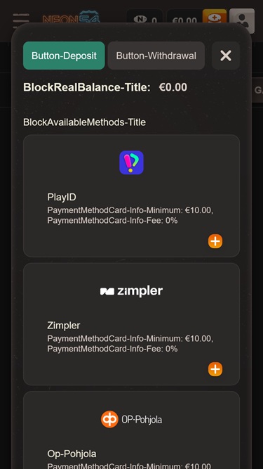 Neon54 Casino पर बैंकिंग विकल्प