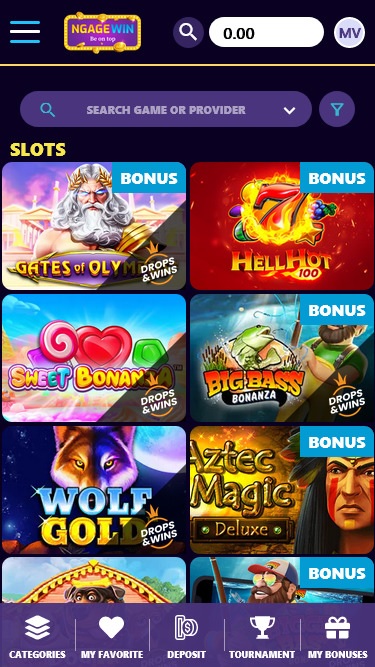 अगर आप ऑनलाइन स्लॉट्स के शौकीन हैं, तो आपको NgageWin कैसीनो में समय बिताना ज़रूर पसंद आएगा। यहाँ कुछ बेहतरीन गेम उपलब्ध हैं जैसे गेट्स ऑफ़ ओलिंपस, द डॉग हाउस मेगावेज़, वुल्फ गोल्ड, हॉट फ्रूट्स 27, लकी जोकर 10 , और भी बहुत कुछ। यहाँ ढेरों वन-आर्म्ड बैंडिट्स उपलब्ध हैं और हमें यकीन है कि आपको इनमें से कई पसंद आएंगे।