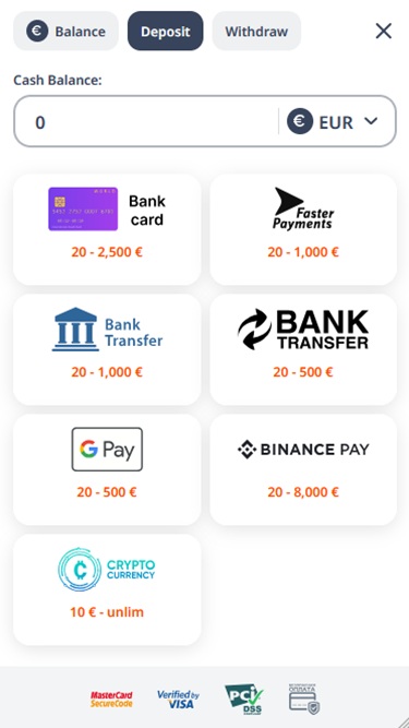 यदि आप साइन अप करने का निर्णय लेते हैं, तो एक सरल पंजीकरण प्रक्रिया की अपेक्षा करें जो कुछ ही समय में पूरी हो जाएगी, चाहे आप इसे अपने व्यक्तिगत कंप्यूटर से एक्सेस करें या अपने मोबाइल फ़ोन से । निर्बाध खेल के लिए एक अच्छा इंटरनेट कनेक्शन होना अनिवार्य है, और यदि आप इस पर भरोसा कर सकते हैं, तो आप कैसीनो की पेशकशों को और करीब से देखने के लिए पूरी तरह तैयार हैं।