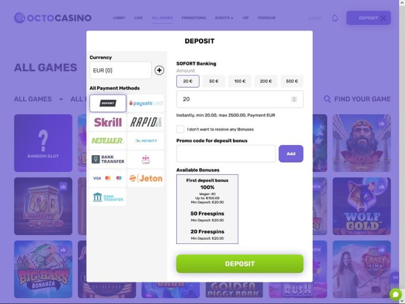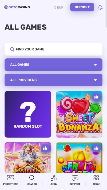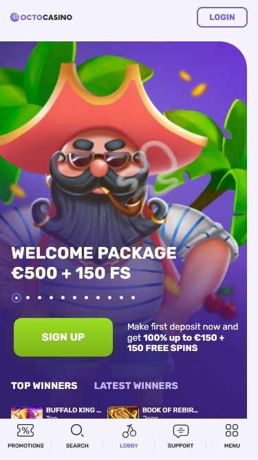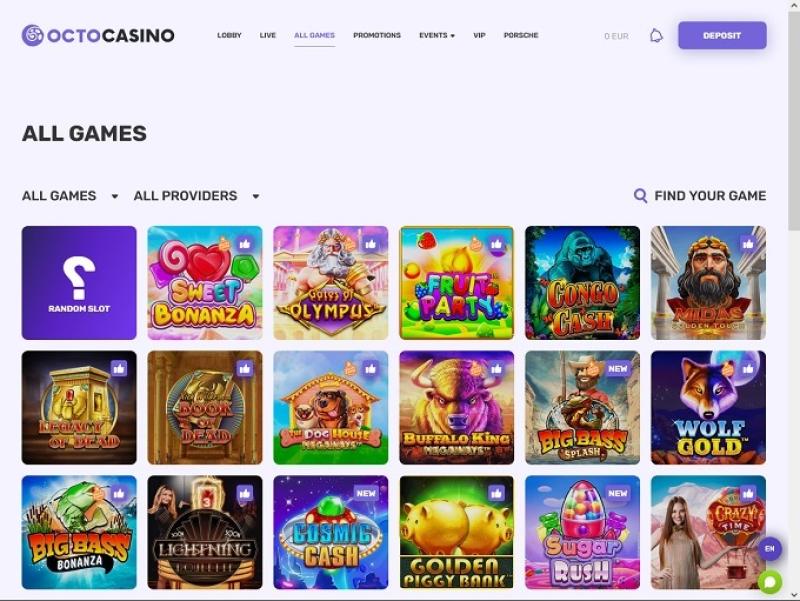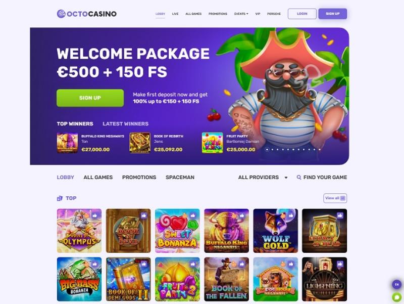 वेबसाइट के ऊपरी हिस्से में वर्तमान टूर्नामेंट, इनाम के अवसर और नवीनतम कैसीनो समाचारों वाला एक बड़ा प्रचार स्लाइडर है। कैसीनो गेमिंग ऑफ़र प्रस्तुत करने के लिए होमपेज का मध्य भाग हमेशा सबसे अच्छा क्षेत्र होता है क्योंकि यह सट्टेबाजों का ध्यान आकर्षित करता है, और ऑक्टोकैसीनो इस वेबसाइट क्षेत्र का चतुराई से उपयोग करता है।