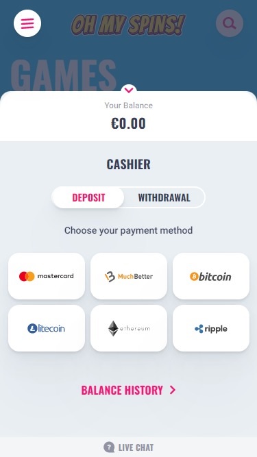Oh My Spins Casino पर बैंकिंग विकल्प