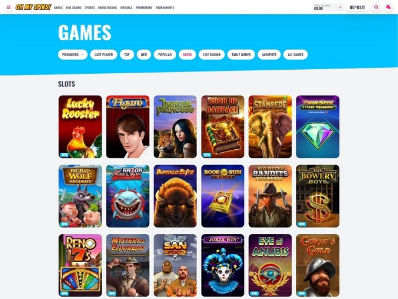 एक अच्छी गेम लाइब्रेरी का होना हमेशा एक ऑनलाइन कैसीनो द्वारा चुने गए पार्टनरशिप विकल्पों से सीधे जुड़ा होता है। ओह माई स्पिन्स के पास पार्टनर्स की एक प्रभावशाली सूची है, सभी बड़े नाम - जो अच्छे गेम प्रदान करते हैं। माइक्रोगेमिंग, नेटएंट, यग्द्रसिल, प्लेटेक उनमें से कुछ ही हैं।