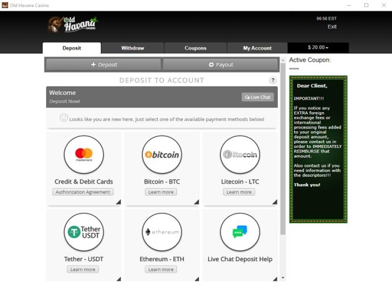 Old Havana Casino निम्नलिखित देशों के खिलाड़ियों को स्वीकार नहीं करता है: बोस्निया और हर्जेगोविना, कोस्टा रिका, मलेशिया, मोरक्को, नीदरलैंड, ओंटारियो, रूस और सिंगापुर.
