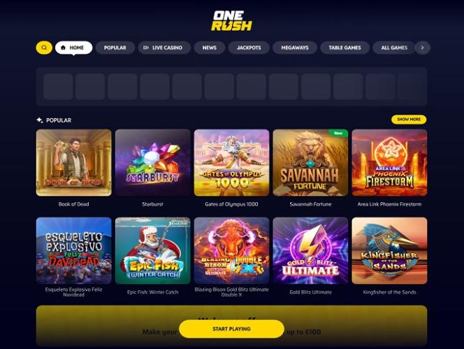 2025 में लॉन्च हुआ OneRush एक ऑनलाइन कैसीनो है जो कैसीनो गेम्स की अपनी व्यापक सूची पर ज़ोर देता है, जिसमें ऑनलाइन स्लॉट, लाइव डीलर और टेबल गेम्स सहित सैकड़ों बेहतरीन गेम्स शामिल हैं, साथ ही कुछ इंस्टेंट-क्रैश गेम्स भी उपलब्ध हैं। यह ब्रांड फिनलैंड और एस्टोनिया के खिलाड़ियों को स्वीकार करता है और उन्हें वेलकम बोनस का लाभ उठाकर अपनी जुआ यात्रा शुरू करने के लिए आमंत्रित करता है।