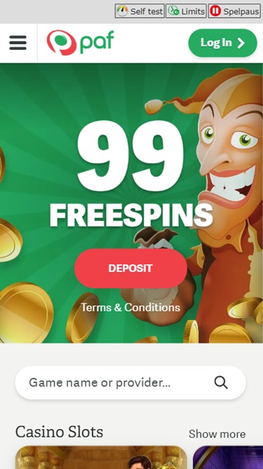 Paf Casino Microgaming, Net Entertainment, Playtech, BetSoft, 1x2gaming, Barcrest, Big Time Gaming, ELK Studios, Evolution Gaming, iSoftBet, lightningboxgames, Novomatic, Oryx, Play'n GO, playson, Quickspin, Rabcat, Relax Gaming, Thunderkick, Yggdrasil, Wazdan, GameArt, Booming Games, Stakelogic, Pragmatic Play, Nolimit City, Red Tiger Gaming, Spinomenal, Red Rake Gaming, Fantasma Games, SYNOT Games, Kalamba, Spin Games, Skywind, Triple Edge Studios, Stormcraft Studios, Switch Studios, Electric Elephant Games, Bulletproof Games, All41 Studios, Gluck Games, Gameburger Studios, Pulse 8 Studios, Neon Valley Studios, Swintt, Shuffle Master, SpinPlay Games, Real Dealer Studios, GONG Gaming, Blue Guru Games, Buck Stakes Entertainment, Games Global, Amusnet Interactive, Wizard Games, Ash Gaming, Bally Technologies, bluberi, Blueprint Gaming, Greentube, Leander Games, NextGen, Pariplay, Push Gaming, Tom Horn Gaming, WMS, Inspired Gaming, Gaming Realms, SG Interactive, Gamomat, Red7Mobile, CORE Gaming, Scientific Games, RFranco Group, Proprietary, Side City Studios, Reel Time Gaming, MGA, Authentic Gaming, Bally Wulff, Iron Dog Studio, Old Skool Studios, Foxium, Betdigital, Just For The Win, Reflex Gaming, Storm Gaming Technology, PearFiction Studios, Wild Streak Gaming, Slingshot Studios, Fortune Factory Studios, RubyPlay, 4ThePlayer, AvatarUX, Gamevy, Crazy Tooth Studio, ReelPlay, Alchemy Gaming, Rarestone Gaming, Black Pudding Games, Snowborn Games, Boomerang Studios, Hacksaw Gaming, Max Win Gaming, Gold Coin Studios, Bang Bang Games, Half Pixel Studios, Slotmill, SilverBack Gaming, Peter And Sons, Eurostar Studios, Aurum Signature Studios, Lucksome Gaming, Area Vegas, RAW iGaming, Wishbone Games, Apparat Gaming, Circular Arrow, Print Studios, Gaming Corps, Four Leaf Gaming, INO Games, Nailed It! Games, Atomic Slot Lab, Reel Kingdom, Oros Gaming, Indigo Magic and Light & Wonder द्वारा संचालित है, जो वेब-आधारित प्लेटफ़ॉर्म के माध्यम से उपलब्ध कराए जाने वाले खेलों का एक अच्छा संग्रह प्रस्तुत करता है। जो लोग अपने स्मार्टफ़ोन या टैबलेट पर गेम खेलना चाहते हैं, उनके लिए एक मोबाइल साइट भी उपलब्ध है।