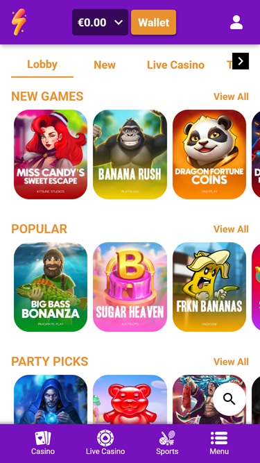 ऑपरेटर द्वारा सुझाए गए कुछ स्लॉट गेम्स इस प्रकार हैं: डेविल्स फ़िंगर, पिंक जोकर: होल्ड एंड विन, प्राइमल मेगावेज़, स्टॉर्मफ़ोर्ज्ड, ज़ॉम्बीज़, ओरान ड्रीम क्रिसमस, एक्स्ट्रा विन, टावर ऑफ़ फ़ोर्टुना, किंग कॉन्ग कैश इवन बिगर बनानाज़ मेगावेज़, युकोन फीवर, फ़्रैंकन बनानाज़, स्टैम्पेड गोल्ड, पिग्गी मिलियनेयर, इट्स शार्क टाइम! क्रिसमस एडिशन, ग्रेट बफ़ेलो मेगावेज़, ब्लेज़िंग मैमथ, वेयरवोल्फ़्स हंट, अफ़्रीकन ट्रेज़र, स्वॉर्ड किंग, थंडर मेगा सेवन्स बोनस बाय, एड्रेनालाईन रश, 6 इन द चैंबर, यम्मी, बोनान्ज़ा लिंक: कैश ट्रेन...