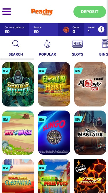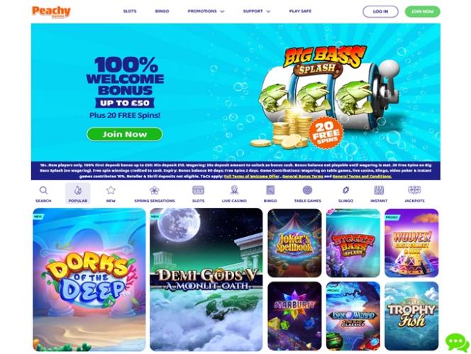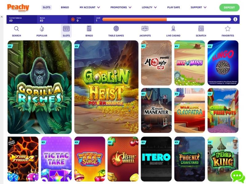 पीची गेम्स में, पंटर्स कई "इंस्टेंट गेम्स" खेल सकते हैं जैसे गोरिल्ला गो वाइल्डर, टोमाटीना बिंगो, ग्रेमलिन्स टाइम टू टम्बल, स्क्वीकी ब्लाइंडर्स, द परफेक्ट स्क्रैच, लव इज ऑल यू नीड, पचिनको, द इनक्रेडिबल बैलून मशीन, स्पिनलोटो...।