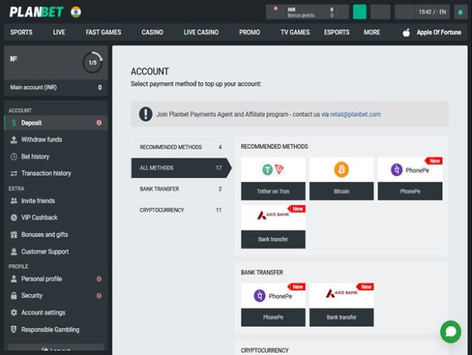 Planbet Casino पर बैंकिंग विकल्प