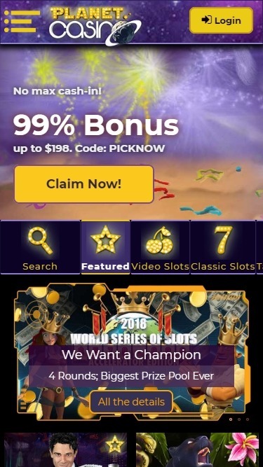 प्लैनेट कैसीनो में एक कॉम्प प्रोग्राम है, जहाँ खिलाड़ी हर $10 के दांव पर 1 पॉइंट कमाते हैं। इसके बाद, साइट आपको कैसीनो में $1 नकद के बदले 100 पॉइंट भुनाने की सुविधा देती है।