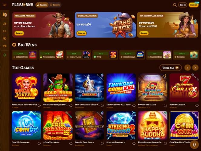 हर नए खिलाड़ी के लिए, PlayJonny कैसीनो में मज़ा एक शानदार स्वागत पैकेज और एक रोमांचक लॉटरी से शुरू होता है जिसमें ढेरों बोनस स्पिन जीतने का मौका मिलता है। मौजूदा खिलाड़ियों के लिए उपलब्ध प्रमोशन में कैशबैक, रीलोड डील्स और लॉयल्टी इंसेंटिव शामिल हैं, जिनका कॉम्प पॉइंट प्रोग्राम सेक्शन में विस्तार से वर्णन किया गया है।
