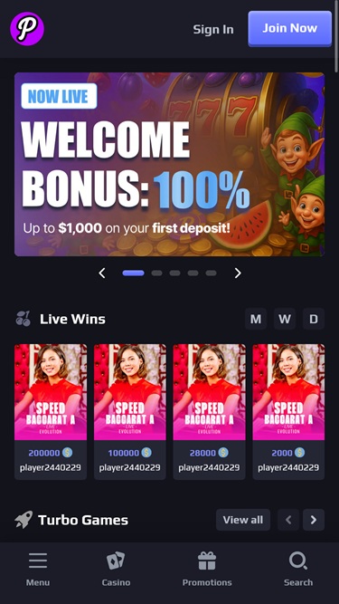 अगर हम इस जुआ साइट का मूल्यांकन केवल इसके दिखावे और स्वरूप के आधार पर करें, तो इसमें कोई कमी नहीं होगी। इसका वातावरण सहज उपयोगकर्ता इंटरफ़ेस, गहरे बैंगनी रंग के संयोजन से सजी थीम और तेज़ लोडिंग समय के साथ खिलाड़ियों का वेबसाइट पर शानदार स्वागत करता है, जिससे आप कुछ ही सेकंड में खेल शुरू कर सकते हैं।