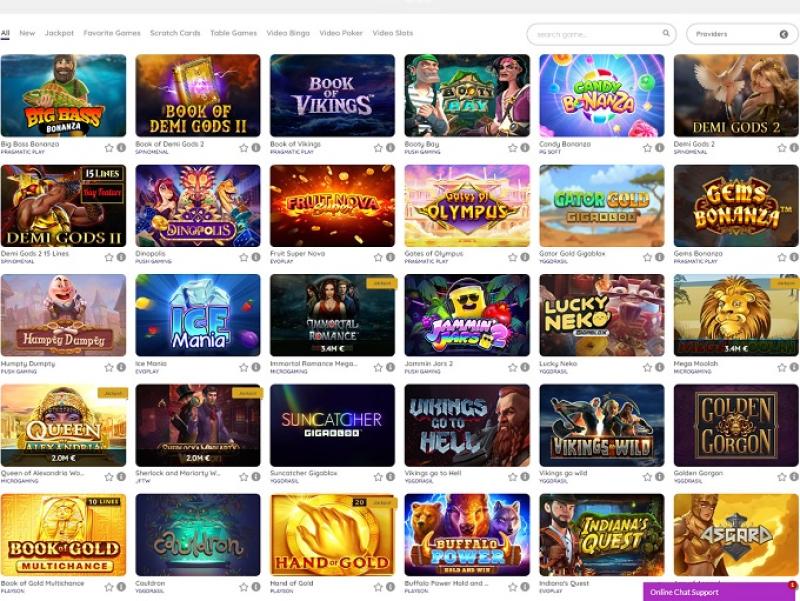 कुछ आकर्षक शीर्षक हैं: गुफा ऑफ फॉर्च्यून, अमर रोमांस मेगा मूलाह, मेगा मूलाह, क्वीन ऑफ अलेक्जेंड्रिया वाउपॉट, शर्लक और मोरियार्टी, विश्व डार्ट्स चैम्पियनशिप, रैम्सेस बुक आरएचएफपी, सिस्टर्स ऑफ ओज जैकपॉट्स, गुड गर्ल, बैड गर्ल, माउंट मैग्मास, क्वीन ऑफ अलेक्जेंड्रिया, अमेजिंग लिंक अपोलो, बुक ऑफ एनीमे, पावर ऑफ गॉड्स हेड्स होल्ड द जैकपॉट, रॉयल कॉइन्स, होल्ड एंड विन, बुक ऑफ कैप्टन सिल्वर, ग्रीडी गोबलिन्स, अफ्रीकन सनसेट जैकपॉट, डायमंड वाइल्ड, 10000 विशेज, लकी बेबीज जैकपॉट, हैंड ऑफ गोल्ड, डिवाइन ड्रैगन होल्ड एंड विन, होम्स एंड द स्टोलन स्टोन्स...