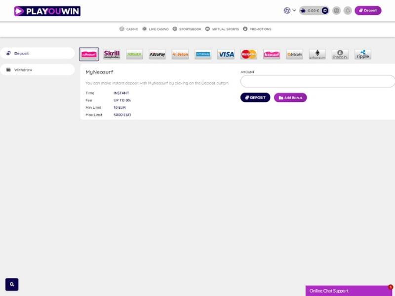 Playouwin Casino पर बैंकिंग विकल्प