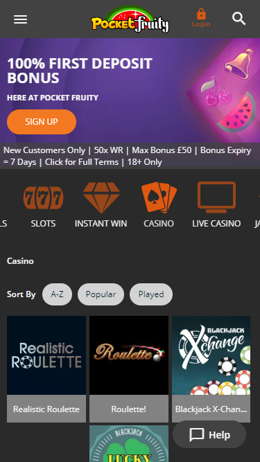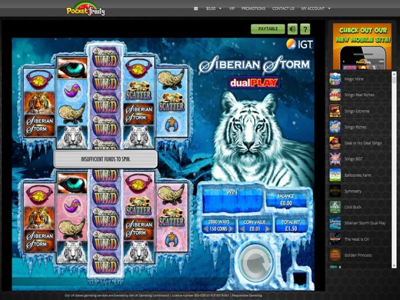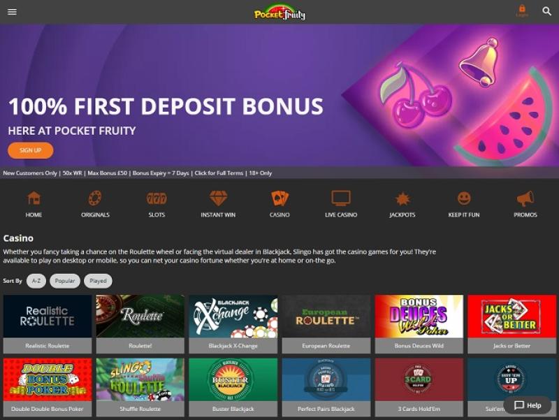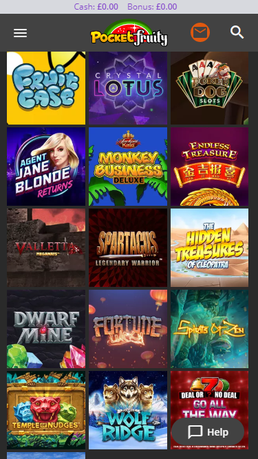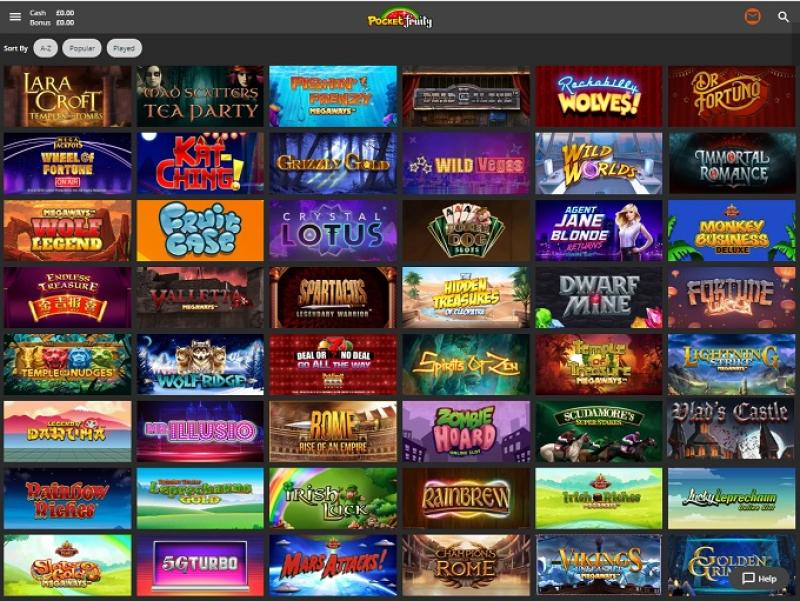 पॉकेट फ्रूटी कैसीनो Microgaming, Net Entertainment, Barcrest, Big Time Gaming, Evolution Gaming, EYECON, Genesis Gaming, Rabcat, Yggdrasil, Realistic Games, IGT, Fantasma Games, FUGA Gaming, Sigma Gaming, Stormcraft Studios, All41 Studios, Gameburger Studios, Neon Valley Studios, Games Global, 2by2 Gaming, Bally Technologies, Blueprint Gaming, Leander Games, WMS, SG Interactive, SUNfox Games, CORE Gaming, Foxium, Just For The Win, The Games Company, Reflex Gaming, Storm Gaming Technology, Bla Bla Bla Studios, MetaGU, 4ThePlayer, Crazy Tooth Studio, High 5 Games and Aurify Gaming द्वारा संचालित है और कैसीनो के गेम एक वेब-आधारित इंस्टेंट प्ले प्लेटफ़ॉर्म के माध्यम से उपलब्ध कराए जाते हैं। यह साइट आपके फ़ोन के इंटरनेट ब्राउज़र के माध्यम से लोड होती है, जिसके लिए इसे विशेष रूप से डिज़ाइन किया गया है। साइट का एक डेस्कटॉप प्लेटफ़ॉर्म भी है, हालाँकि यह साइट अपने प्रतिस्पर्धियों की तुलना में उतनी आकर्षक नहीं दिखती।